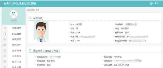 (3)修改执业注册信息中的相关内容:个人信息修改(学历、研究生院、任职资格)、个人照片更新、部门信息设置。