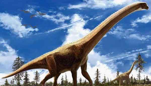 2.珀塔龙:珀塔龙长35-40米,可重达80-110吨。作为地球上最大的恐龙之一,普塔龙·雷耶斯可以把大象抱在胸前,被称为“恐龙之王”。