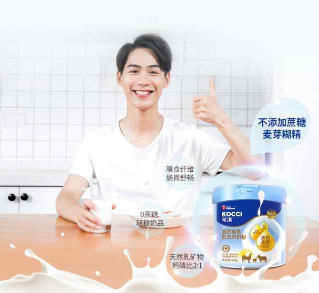 主要是“幼健配方”,四高;四个不加。柯奇高钙高铁配方羊奶粉-营养成分图
