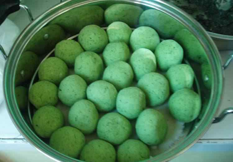 12 水煮沸腾后,放入要蒸的青团子,大火蒸约20分钟左右,然后新鲜出炉。