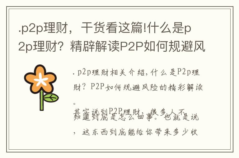 1.《关于.p2p理财我想说p2p理财大揭秘,民蕴财富、拍拍贷、陆金所、人人贷、ppmoney、有利网怎么选?》援引自互联网,旨在传递更多网络信息知识,仅代表作者本人观点,与本网站无关,侵删请联系页脚下方联系方式。