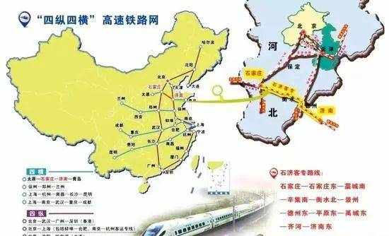 石济高铁还打通了太原、石家庄等城市到青岛、上海等地的快速通道。同时,它与津保铁路南北呼应,在京津冀区域内形成以北京、天津、石家庄和德州为基点的京津冀“矩形”高铁网。