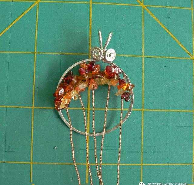 用细一些的手工铜丝绕住爱心并把珠子串起来。
