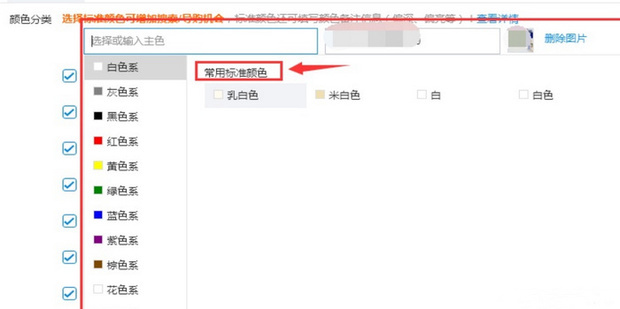 24个自定义选项用完后,颜色选项里还可以添加常用标准颜色,选项内容需要在备注的地方标明一下,因为有字数限制,标注不清楚的,可以在后面添加选项图片说明一下。