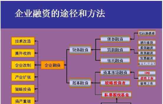 融资从狭义上讲就是一个企业资金募集的行为和过程。企业根据自身的经营、财务状况以及对未来发展的需要,通过一定方式,向企业的投资者和债权人筹集资金,来保障企业的正常生产和经营管理需求的理财行为。一般来说企业募集资金的主要目的:企业扩张、企业还债以及以上两者同时需要。而从广义上来讲,融资就是货币资金的融通,也就是当事人通过各种方式在金融市场上筹措或贷方资金的行为。而作为企业来所,更加需要全面和深刻的了解金融知识、结构和市场,毕竟企业的发展离不开金融的支持。