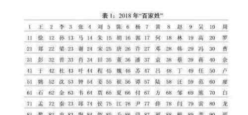 2018年百家姓排行榜