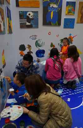 今年“国际助残日”前夕,北京外企人力资源服务有限公司邀请金移动美术馆到FESCO总部服务大厅,举办为期三周的自闭症儿童绘画展,向人们展示他们美好的内心世界和优秀的绘画作品。在启动仪式上,金的学生和小朋友以及各界爱心人士绘制了一幅长约8米的油画《冰雪奇缘迎冬季残奥会》。
