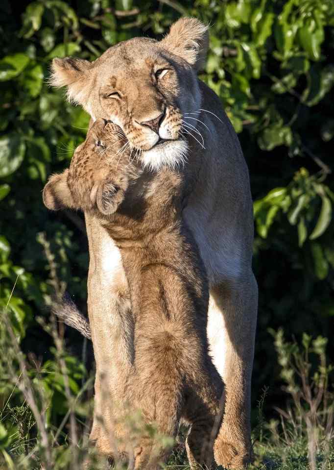 2018年2月22日,55岁的摄影师克林特·拉尔夫(Clint Ralph)在肯尼亚马赛马拉国家保护区(Masai Mara National Reserve)拍摄了一只小狮子乞求母亲拥抱的照片。照片中,一只小狮子踮着脚,用前脚抱住妈妈的脖子。画面很温馨。