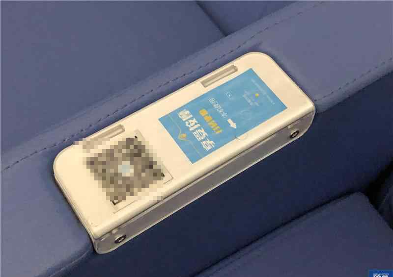 舒适的座椅可以缓解乘客的疲劳,但目前只有部分年轻人在体验这款按摩椅的按摩功能,大部分乘客都不知道怎么用,就在这里休息吧。图为座椅扶手旁的二维码。使用时只需扫描上面的二维码即可开始使用。