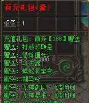 先看看钱会给我们什么,等你冲NPC的时候再骗人。今天小哥哥要好好看看,给我钛狗擦亮眼睛。别被游戏忽悠了!首先,这是背包里的第一个礼包。当您充值88时,您将获得特殊戒指收藏卷、修炼者+50、L1神器和骷髅洞宝,以及5个经验卷。这里除了体验量,其他的都感觉迷迷糊糊的!