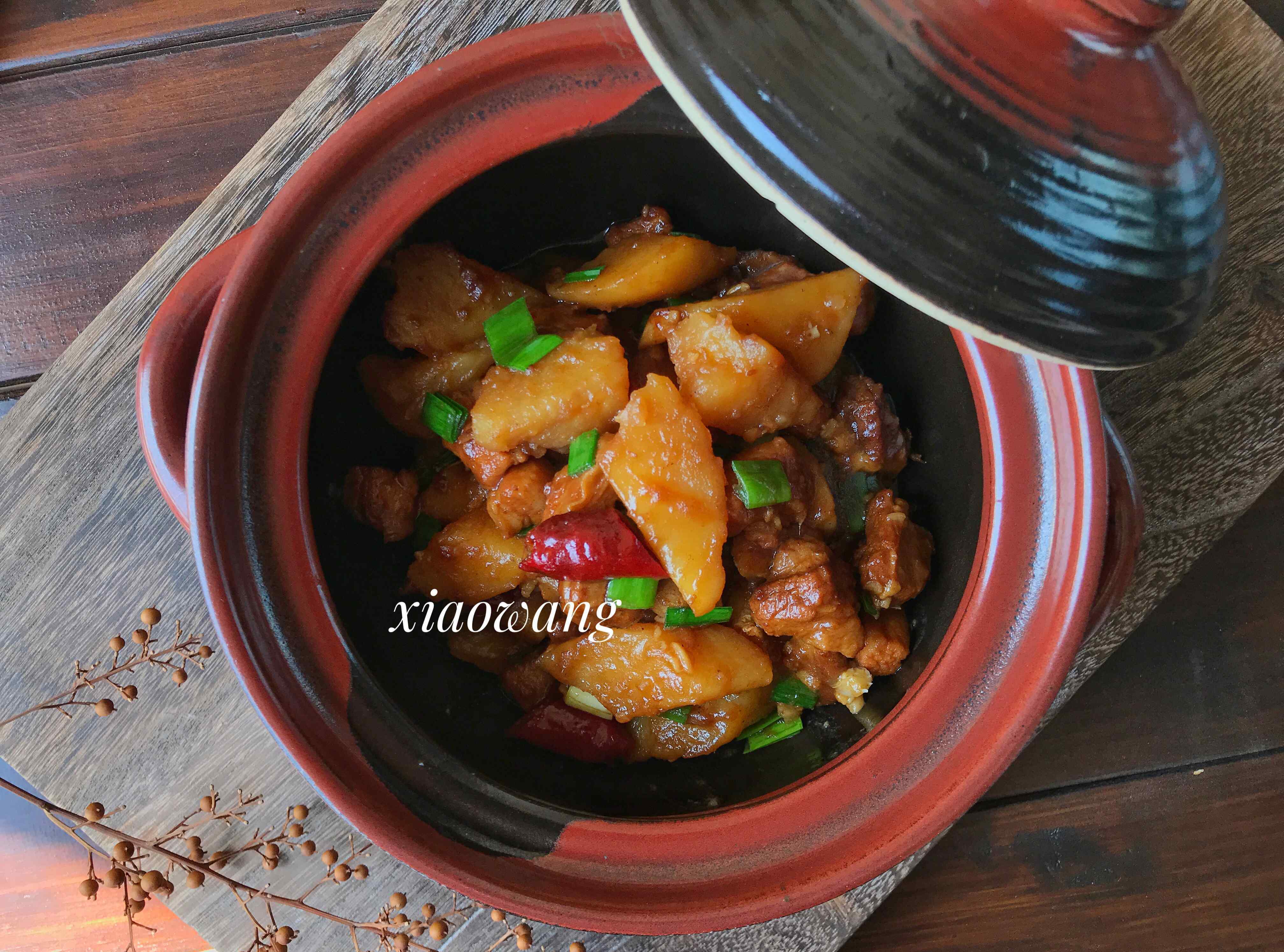 【温馨提示】:土豆和肉最好用糖色炒一下,这样菜的颜色就很鲜艳了。记得用冰糖,冰糖比白糖轻,烧的时候不能吃太多甜就正好。