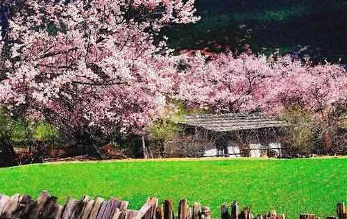 林芝桃花最有名。从三月中旬到四月初,满山的桃花覆盖了山坡,一直延伸到河谷