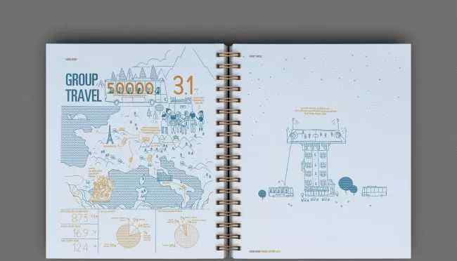 库尼是瑞士最大的旅行社之一,它的年度报告并不像往常一样。它使用插图结合旅行主题来展示公司2014年的有趣事件。这个创意有趣的设计还获得了iF2016通信设计类奖。