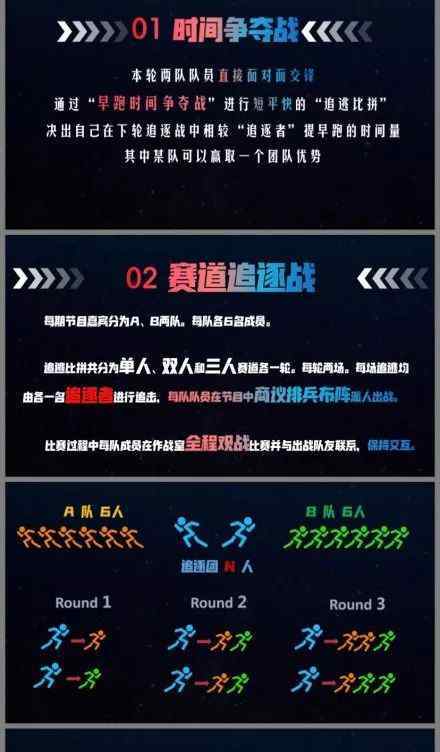 “追我家”是出逃方,被“追群”追。双方在争夺时间的战斗中展开竞争,让明星艺人在赛道追逐中先于“追逐者”决定自己的早期跑步时间,最终决定最顶尖的跑步者。