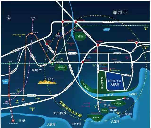随着惠州地铁1号线规划逐渐明朗,二期工程将延伸至大亚湾,预计中心区将设置3个车站。此外,许多裸露的深圳地铁将计划延伸到大亚湾,未来中心区的轨道交通潜力是无限的。