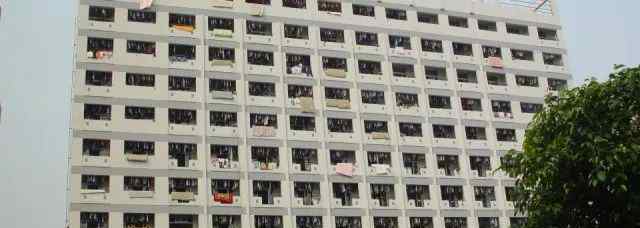 按照官方收费表,滨江北区A座一楼一人一年750元;六人套房,一年每人1200元;四人套房,每人1500元,一年。共有12层,7层以上可使用2部电梯。一般来说,男同性恋学会住下层,女学生住上层。二楼上面有吊扇没有空。楼下是北食堂和校园超市。