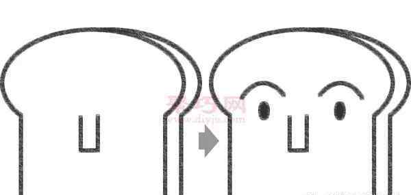 第三步:画吐司面包的嘴和脸,以面包超人棍图收尾!