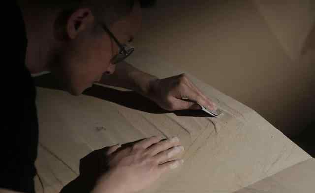 看这幅画,它的桌子不是画的,是浅浮雕。通过中国画的纸将浮雕压入画中。光线一亮,你的眼睛就会欺骗你,让你以为那是一幅画。这些创作节点里的所有作品都有线索可循,这是我对绘画不断的反思。