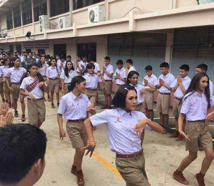 说起男校,大家应该觉得这个学校只招男学生。你知道泰国的男校是什么样的吗?最近,泰国的一所男孩中学开始流行。为了迎接新生,学校里的男生甚至化着妖娆的妆跳舞,让很多网友觉得:简直太辣了!