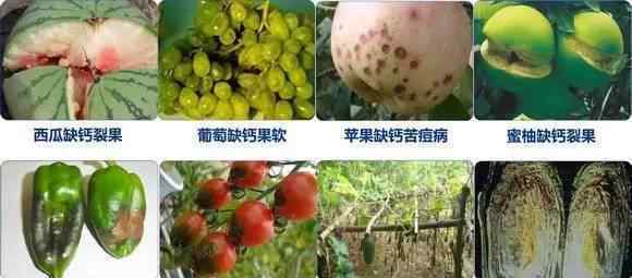 植物缺钙可导致顶芽、侧芽、根尖等分生组织卷曲畸形,植株短小,生长点粘稠,腐烂死亡,幼叶卷曲、畸形、失绿,新叶坏死。果树和蔬菜缺钙导致许多生理疾病。资料来源:孟小龙农业