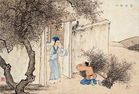 蔡顺,汉代汝南人,丧父丧母,非常孝顺。当时正是王莽之乱,饥荒之时,米贵,只好捡桑母子充饥。有一天,我正巧遇到赤眉军,叛军士兵厉声问道:“为什么把红色的桑葚和黑色的桑葚分别放在两个篮子里?”蔡顺答道:“黑桑是老母亲吃的,红桑是自己吃的。”