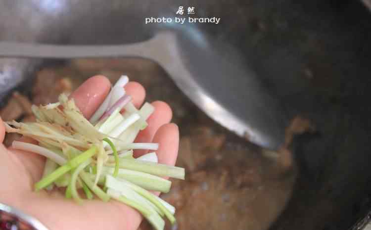 10 20分钟后,水分剩下1/3的时候,放入葱白,姜丝,小香芹段2,继续煨至差不多收汁