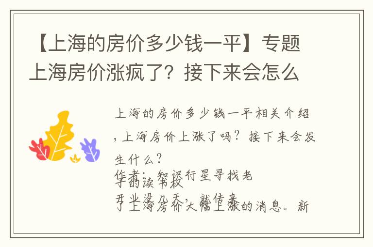 1.《【上海的房价多少钱一平】「调查」学区房暴跌60万?看新政之下的上海房价现状》援引自互联网,旨在传递更多网络信息知识,仅代表作者本人观点,与本网站无关,侵删请联系页脚下方联系方式。