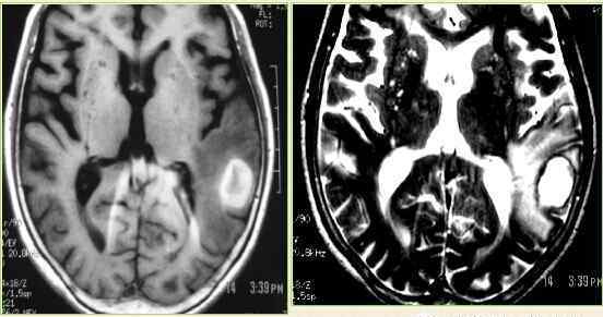 4.慢性期(2周后):水肿消失,含铁血黄素演变成含铁血黄素,血肿小到足以填满,但大到足以留下囊腔。