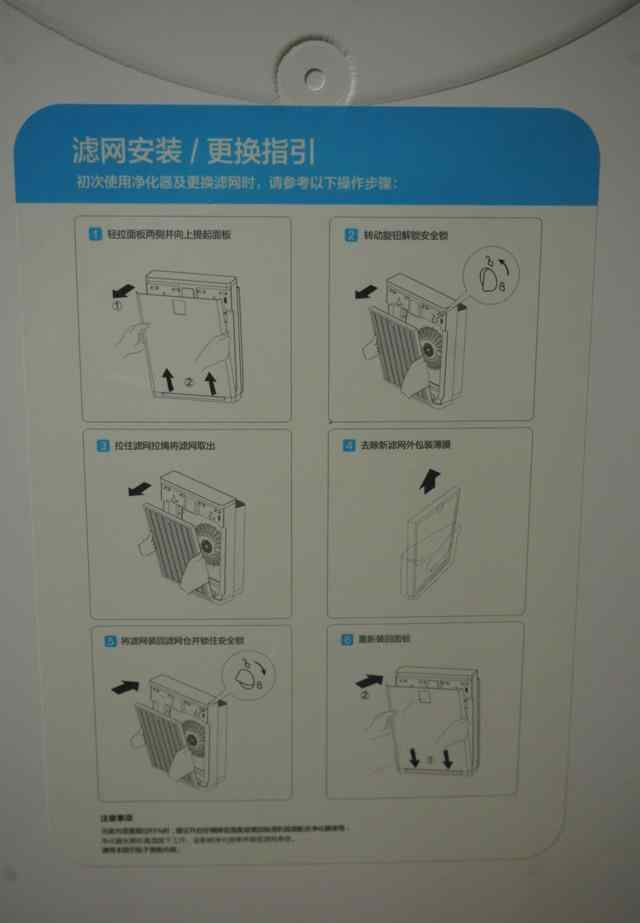 前篮板内侧有明显的尖。遵循蓝色区域中过滤网安装/更换指南的步骤。
