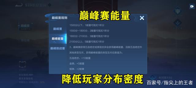 刚开始的巅峰赛是真的难,赢一次输一次相当于没玩,拿到mvp可能会少减两分,可以说上分之路异常坎坷,而随着版本的变化,官方也给巅峰赛玩家加入了保底的机制,排位有段位继承,巅峰赛有巅峰积分继承,所以如果上个赛季你的分数够高,下个赛季你能输好多把不掉分,更有巅峰能量,五杀、金牌、银牌都能增加巅峰能量,用来抵消失败后的分数抵扣。