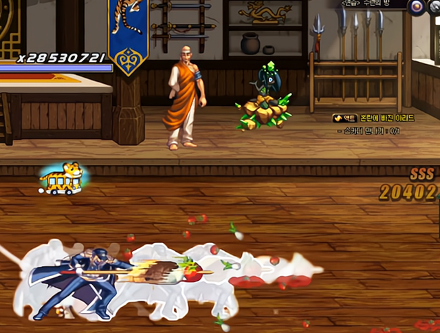 类似于的特效还有魔枪士的“大杂烩串串”,攻击特效是番茄到处飞,你开荒奥兹玛的水平很下饭,打完就是满地大番茄,只能说600W金币有这样的武器效果还是可以接受。