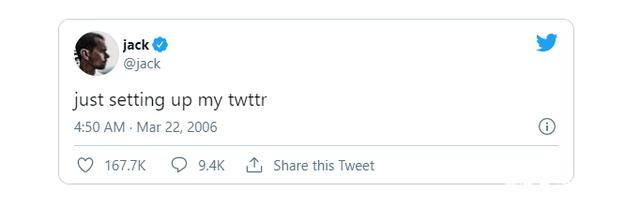 而那条价值290万“一条推特”,作者是Twitter的创始人Jack Dorsey。他将人类史上第一条推文进行代币化,通过放在NFT交易网站上进行出售的方式,最终竞拍出了将近290万美金的天价。
