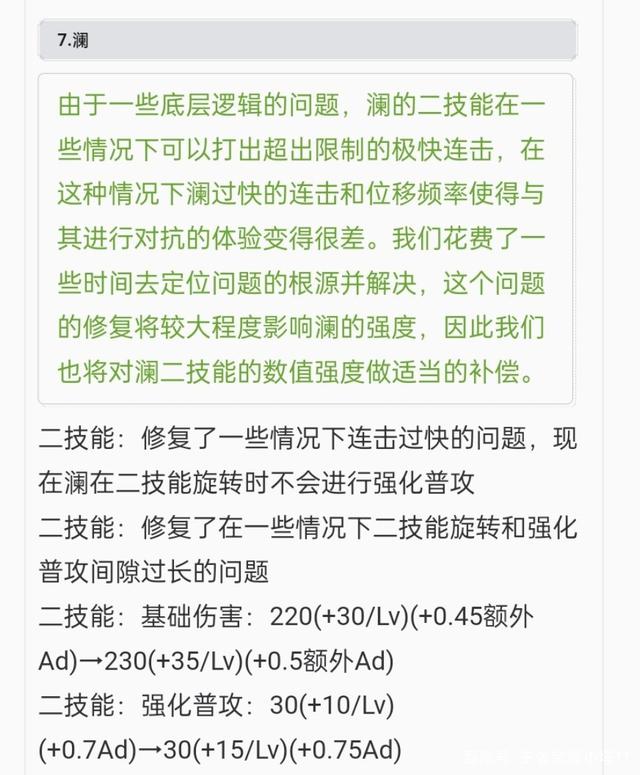 以前英雄调整顶多是削弱伤害或者增加CD,但澜的削弱是直接对底层机制的调整,这是非常要命的。更重要的是,澜本身胜率只有不到47%,这么一削弱又不知道要掉多少胜率,还想用澜上分的玩家珍惜这最后一段时间吧。