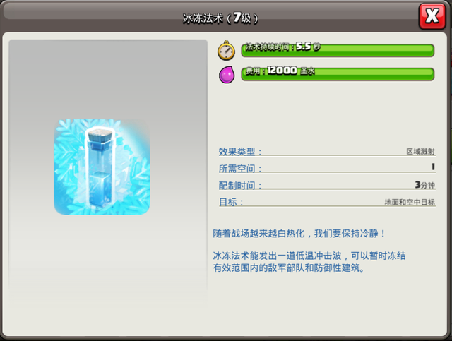 冰冻法术能发出一道低温冲击波,可以暂时冻住有效范围内的敌军部队和防御性建筑,使它们不能移动和攻击。