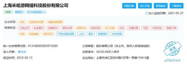 AI对米哈游的风险评估为“关注”级别,风险不大。