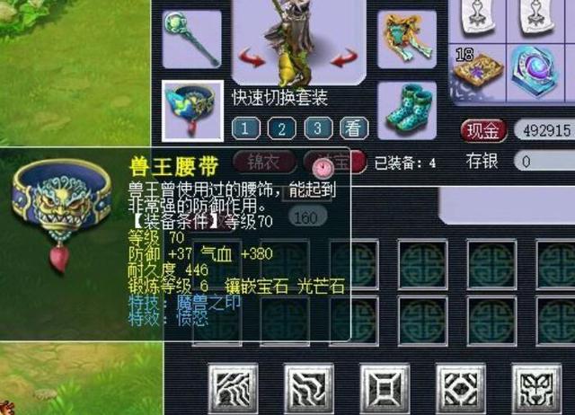 上面是一条拥有的愤怒和魔兽之印双蓝字效果的腰带,这条腰带其实也是有发挥空间的,只不过只有天宫门派的玩家才能够发挥出这条腰带的价值,因为天宫的经脉可以提升魔兽之印效果,让魔兽之印提升的伤害增加到7%,为了能够搭配其他队友的速度,小编感觉这条腰带给敏天宫使用是最好的,这样就可以在己方单位出手之前就可以附加上魔兽之印的伤害加成效果了。