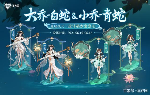 大乔、小乔的白蛇青蛇皮肤设计稿终于出来了,官方分别放出了两套不同的方案让玩家选择,两种不同的风格,满足不同喜好需求的玩家。同时大乔也是双喜临门,王者与白鹤梁水下博物馆联动皮肤也官宣了,宣布大乔白鹤梁神女为最美皮肤。