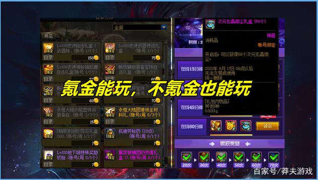 其实大家玩过其他游戏就会知道,现在很多游戏都有“逼氪”的嫌疑,直接就让你抽卡、买礼包,不抽就只能被吊锤,地下城虽然也有“逼氪”,但为了让更多玩家参与其中,在“逼氪”的同时,它还会专门打造出为白嫖玩家量身定做的路线。
