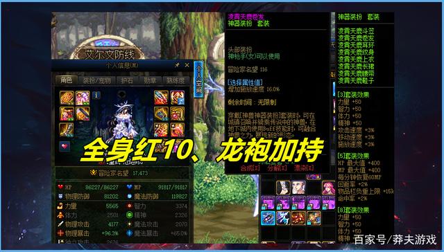 这是一位剑魂玩家,全身红11,特殊3件套红12,武器红13,同样也是一身龙袍加持!老玩家应该都知道,红10和红11虽然实战差距不大,但真正增幅的难度确实非常大的,不仅需要保护券,而且还需要垫子,所以用全身红11已经非常强了,更何况,这位玩家还有3件红12,以及1件红13。
