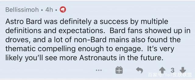 这次曝光的4款宇航员新皮肤属于常规系列,宇航员这个主题连续两年推出了,这次的皮肤和去年的宇航员系列特效风格类似,宇航员系列拳头连着出是有原因的,拳头曾说过,2020年上架的宇航员巴德非常成功,许多常玩巴德或者不常玩巴德的玩家都有购买这款皮肤,这说明宇航员这个主题有非常不错的吸引力,因此这个主题在未来一段时间以内还会考虑让其他英雄加入进来。