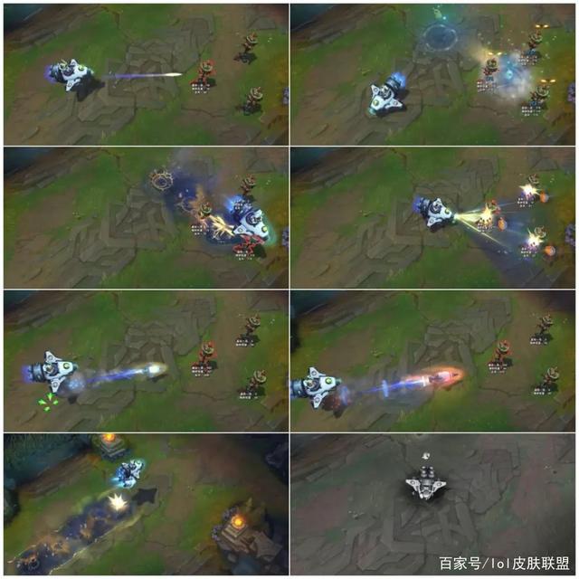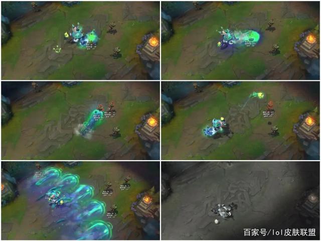龙龟这款皮肤比较常规,Q技能像小时候玩的陀螺,W和E技能表现很一般,其实也可以理解,因为W技能是防御姿态,E技能是嘲讽,因此这两个技能本身也没有太多特效元素展现,换到皮肤上面也就不会有太多特效了,R技能的表现比较好一些,远距离状态下(比如在Q技能过程中使用R技能),龙龟撞击的区域会有一个标记,落地的时候该区域会有大量的陨石碎片蹦出,R技能持续过程中有三个小外星人从地底钻出,有点像打地鼠的感觉。