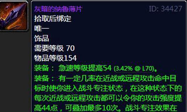 其实这是有原因的,因为在最早的TBC版本初期,龙脊奖章是没有内置CD的,也就是说,它持续十秒的325点急速可以说是常驻的。在装备不好的阶段,325点急速可能体现不出多大的作用,不过,到了太阳井高地阶段的副本,常驻325点急速是极其优质的属性,碾压“灰暗的纳鲁薄片”。