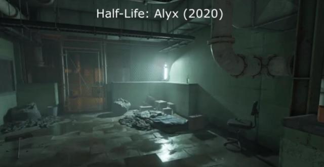 下图分别是1998年的《半条命》和2020年的《半条命:爱莉克斯》,可以发现游戏中的灯光闪烁风格很类似。