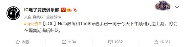 非常遗憾,备受瞩目的冠军上单Theshy暂时无法归队,IG官博给出的新公告惹众议:NoFe教练和Theshy选手已经顺利抵达上海,他们将在隔离期结束后,回到IG俱乐部。