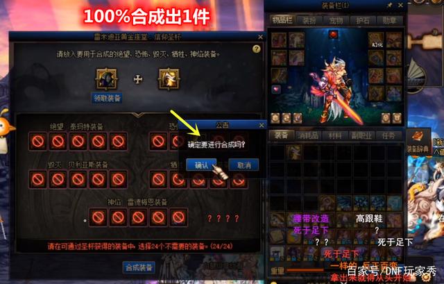 CEO开的奥兹玛罐子,有4件多余的没有用的奥兹玛装备,旭旭宝宝打开了奥兹玛装备合成系统,利用每次合成删除掉6件装备的规则,连续合成4次,成功Ban掉24件不要的装备,直接100%选择领取所需的阿斯特罗斯装备。
