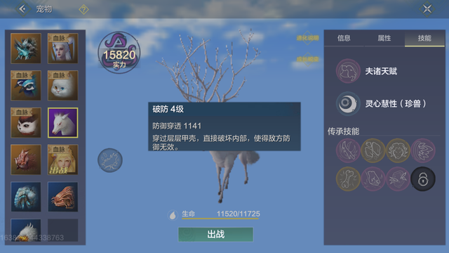 4:穿透,必选宠物技能,它为宠物和人物带来的收益伤害要高于其他增伤,因为不管是PVP,还是PVE,对手均有防御,就五级穿透提供的1881穿透而言,它能够带来的最大收益是可以抵消26.13%的免伤。