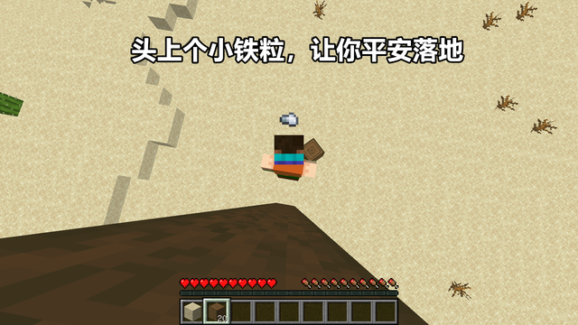 当我辛辛苦苦收集够方块然后原地叠高跳下来,发现头顶上出现了一个小铁粒,而这个小铁粒可以让你平稳的落地,不会受到摔落伤害。