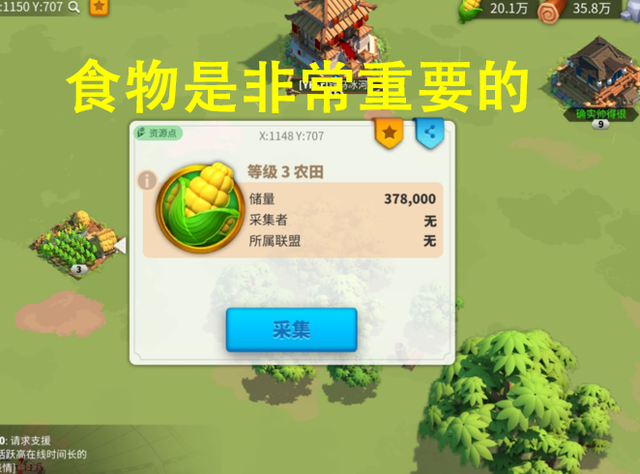 我们刚进入游戏,系统会自动给你分配到一个地方,在这个地方你需要不短短的提升、升级自己的联盟,而想要升级联盟,其实是需要时间的,并且如果派斥候去附近的联盟侦查的话也是需要给斥候们食物的,所以食物资源是很重要的。