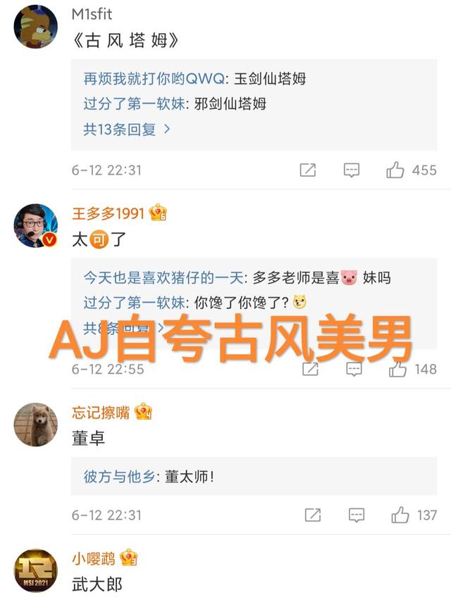 前言:S11赛季的比赛正在如火如荼地进行中,相信绝大多数的玩家都关注了最近一段时间的夏季赛,Lpl赛区的比赛已经正式开始了,这两天的lpl国风日引来了很多玩家的关注,作为首次特色的国风系列,Lpl赛区官方做了很多的努力,不仅仅安排了众多职业选手拍摄汉服的照片,就连lpl赛区官方解说在舞台上都穿起了汉服。这两天一个有关于貂蝉,王允和董卓的同框画面火了起来,主要调侃的就是lpl赛区的三位解说,Rita,记得和aj,三个人在画面中的违和感全无,尤其是aj,居然还自称是古风美男?很多的玩家纷纷调侃,更像是古风塔姆。