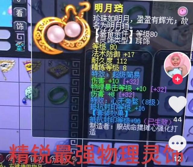 听说上面的这件80级耳饰是69级物理系的最强灵饰,因为这件80级的灵饰拥有着超级简易特效,主属性是法术防御,下排增加了两条伤害和一条物理暴击,也打满了星辉石,目前被打上了八级的心无旁骛,也就是抗封的灵饰特性,听说这件灵饰当时的成交价格是70万,所以梦幻大佬的世界是普通玩家进不去的。